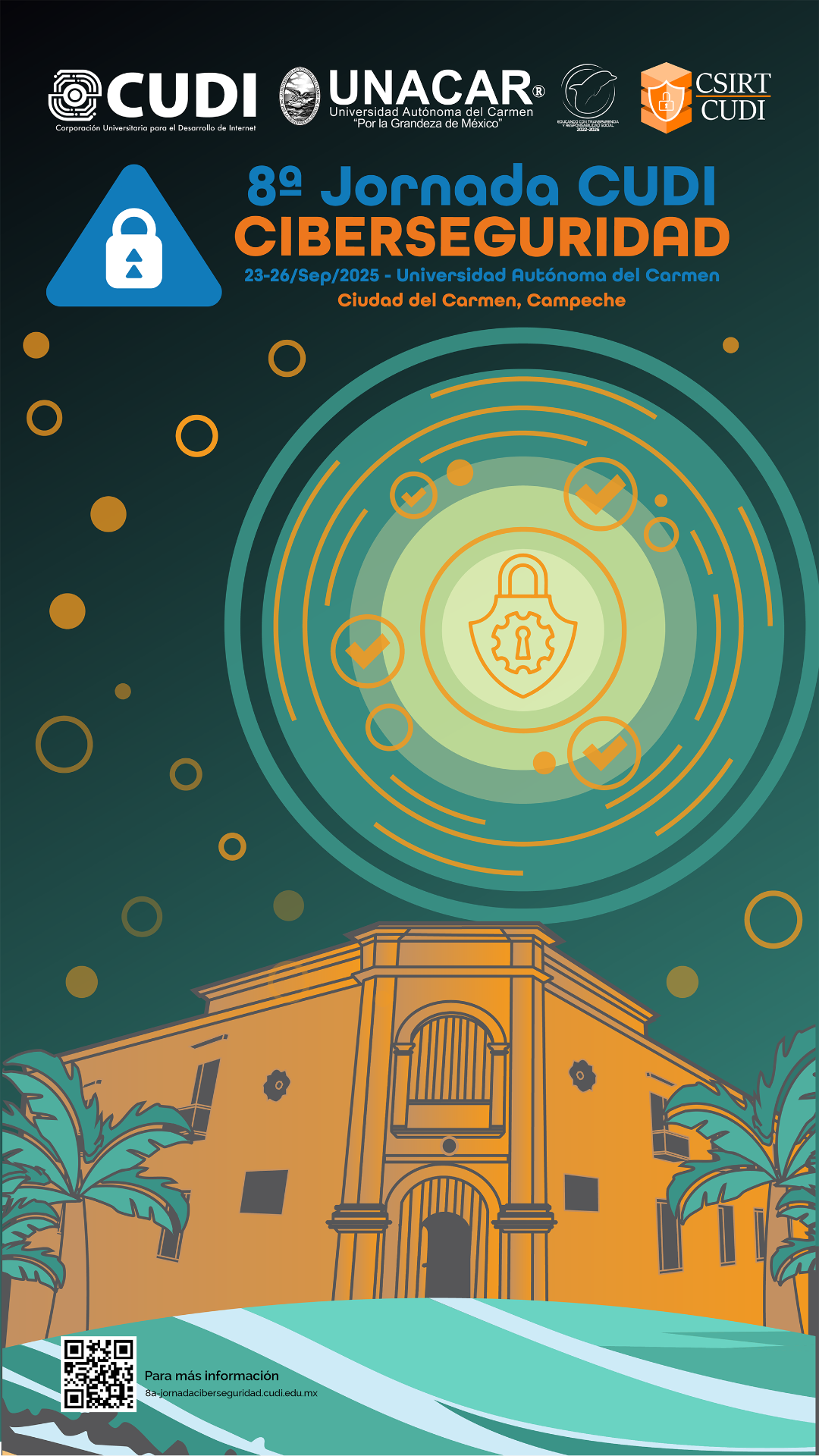 En el próximo mes de septiembre, estaremos participando en la octava jornada de ciberseguridad organizada por el Consejo Universitario para el Desarrollo de Internet CUDI y la Universidad Autónoma del Carmen, en Ciudad del Carmen, Campeche.